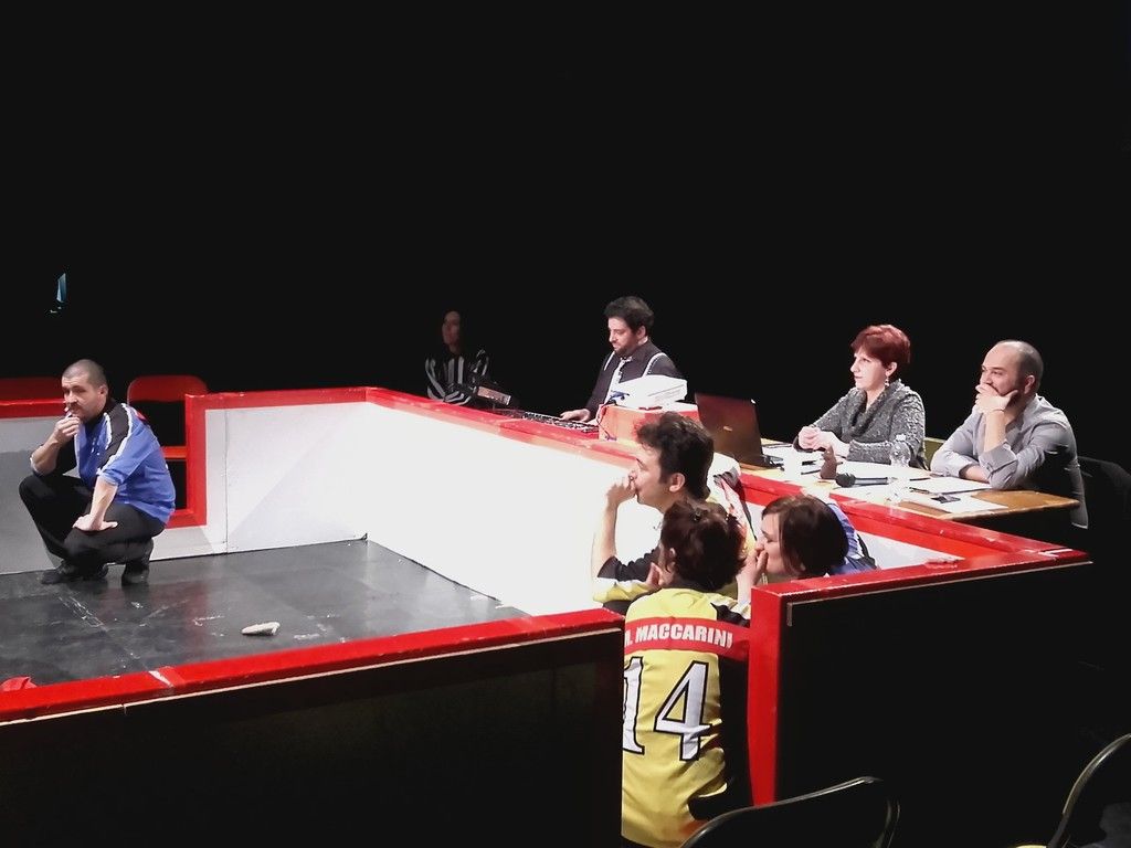 Ieri sera a sfidarsi, senza costumi e senza copione, sono stati sei professionisti provenienti da diverse città d’Italia: Roberto Zunino, Stefano Prevosto, Roberto Boer, Andrea Proietti, Alida Boniotti e Marzia Maccarini. Ad accompagnarli le musiche del Maestro Enrico Messina. A presentarli l’improvvisatore torinese Enzo Zammuto. E infine a dirigerli, con la maglietta a righe d’obbligo per ogni arbitro di hockey che si rispetti, Federico Stefanelli, ormai un vero e proprio beniamino del pubblico.