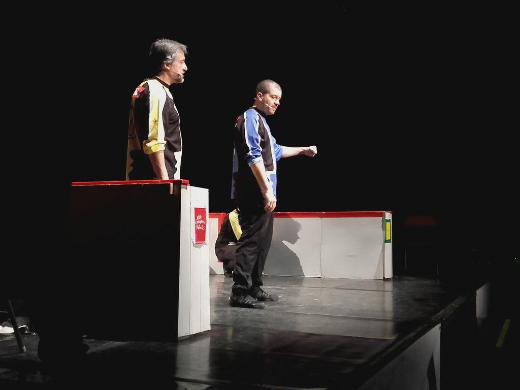 Il Match è uno spettacolo che coniuga divertimento, abilità attoriali e il coinvolgimento costante del pubblico. Il format, nato in Canada negli anni ‘70, prende a prestito alcuni dei simboli dell’hockey per portarli all’interno del teatro. Ed è così che due squadre, vestite da casacche colorate e dirette da un arbitro, si scontrano all’interno di un ring, o meglio all’interno di quello che viene detto “patinoire”, proprio come il campo da hockey.