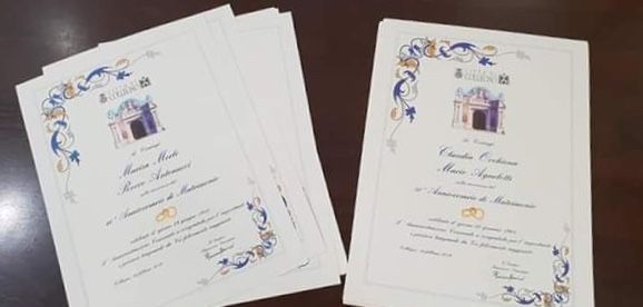 Il sindaco Casciano e l'assessore De Nicola hanno accolto le numerose coppie e consegnato loro una pergamena in riconoscimento dei loro anni d'amore