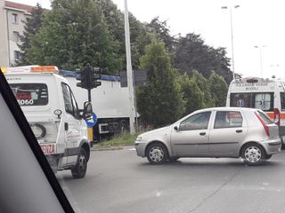 Il mezzo pesante avrebbe agganciato l'utilitaria. Fortunatamente si segnalano danni solo alle vetture