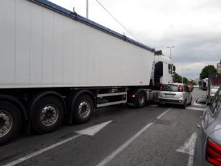 Incidente insolito e traffico con qualche difficoltà, in queste ore a Rivoli, in corso Francia. Un incidente d'auto ha infatti visto coinvolti un mezzo pesante (un tir con targa tedesca) e una Fiat Panda.