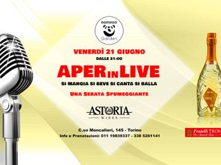 Questa settimana il Bamboo Garden Torino vi aspetta con due inaugurazioni, venerdì 21 giugno dalle ore 21.00 andrà in scena AperINlive, il nuovo apericena musicale con spettacolo animato e live music che farà divertire, cantare e ballare tutti colori che decideranno di partecipare, inoltre sarà una serata all’insegna delle bollicine con gli sponsor Astoria Wines e F.lli Trombetta che regaleranno un flute di benvenuto a tutti i prenotati.