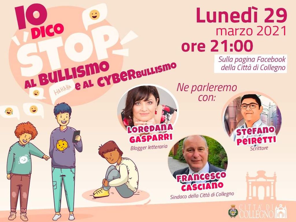 E' fissato per lunedì 29 marzo alle 21, in versione online, l'incontro tra lo scrittore Stefano Peiretti e il sindaco della Città di Collegno, Francesco Casciano, per confrontarsi su temi come bullismo e cyberbullismo in tempo di pandemia. Modera la blogger letteraria Loredana Gasparri.