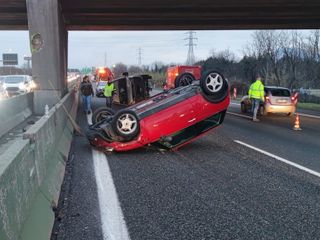 Incidente in tangenziale a Collegno, macchina e furgone ribaltati: traffico in tilt