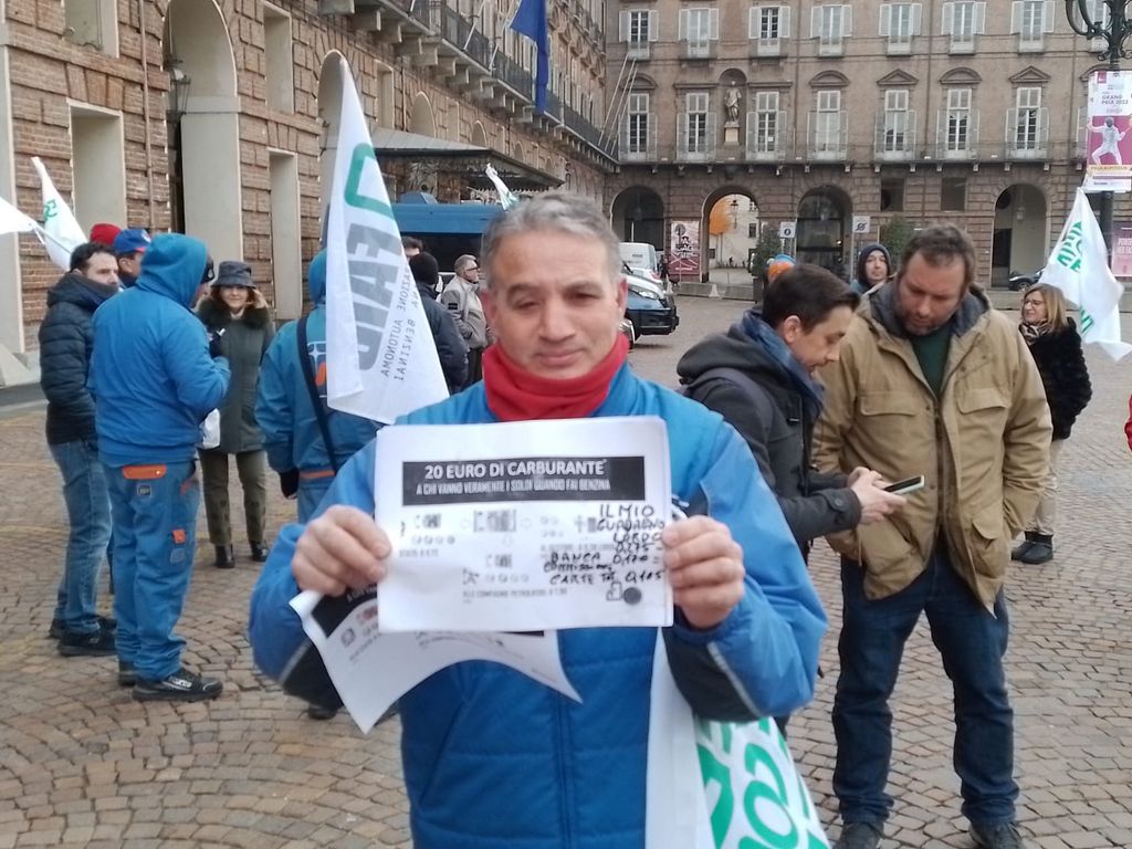 Presidio di Faib Confesercenti davanti alla Prefettura. Nettis: "Non siamo speculatori, anche noi vittime". In Piemonte hanno aderito otto distributori su dieci