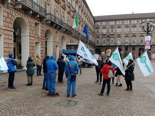 Presidio di Faib Confesercenti davanti alla Prefettura. Nettis: "Non siamo speculatori, anche noi vittime". In Piemonte hanno aderito otto distributori su dieci