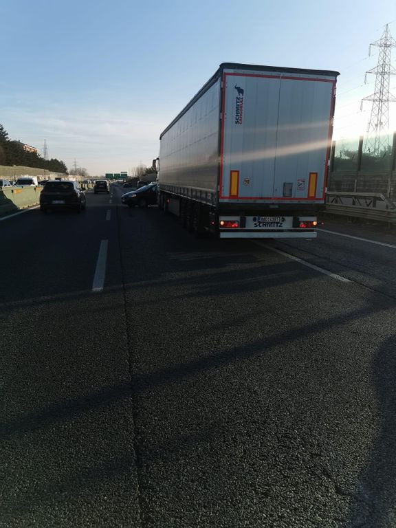 Incidente in tangenziale a Torino, questa mattina. Lo scontro è avvenuto prima di Collegno, in direzione Milano, lungo il tratto Nord.