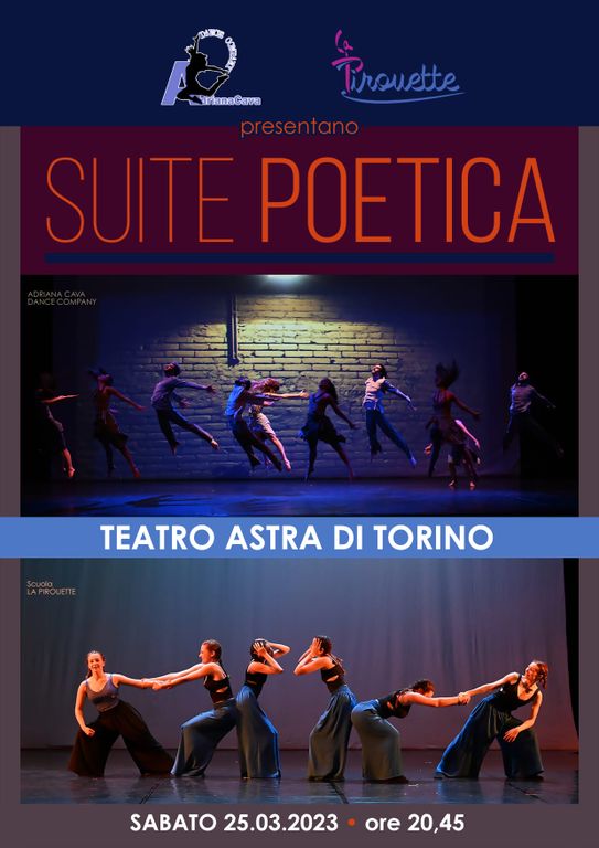 Due passioni per la danza e la poesia uniscono le forze per creare uno spettacolo denso di sogni e di musiche famose e coinvolgenti: ecco la genesi artistica di “Suite Poetica” in scena sabato 25 marzo alle 20,45 presso il Teatro Astra di via Rosolino Pilo 6 a Torino.