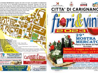 Fino al 14 maggio 2023, si svolgerà la 29ª edizione della Mostra Mercato “FIORI & VINI”, organizzata dal Comune di Carignano e dal Comitato Manifestazioni.
