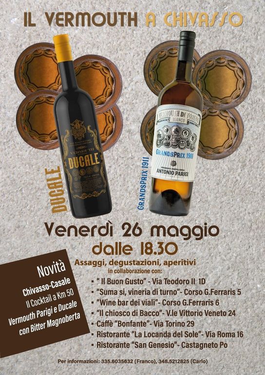 Venerdì 26 maggio 2023, in contemporanea ben sette locali del territorio daranno vita ad un evento a tema, presentando il nuovo cocktail “CHIVASSO - CASALE”:
