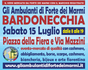 Gli Ambulanti di Forte dei Marmi: le bancarelle del mercato di qualità più famoso d’Italia tornano finalmente a grandissima richiesta nel Torinese con tutto il meglio del Made in Italy artigianale e le ultime tendenze della moda. Si potranno ammirare le ormai mitiche “boutique a cielo aperto” dell’originale Consorzio sabato 15 luglio a BARDONECCHIA, in Piazza della Fiera e Via Mazzini, e domenica 16 luglio a GIAVENO, nella tradizionale location di Viale Regina Elena. Dunque, due appuntamenti da non perdere assolutamente per i tanti appassionati del genere, come sempre all’insegna dello shopping più glamour e conveniente, con orario continuato, anche in caso di maltempo, dalle 8 alle 19.