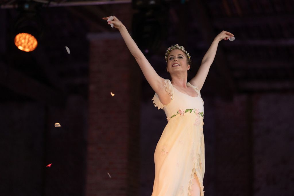 Causa pioggia, nella serata di domenica alcune variazioni che prevedevano l’esibizione sulle punte sono state tagliate, ma è stato comunque offerto uno spettacolo di circa novanta minuti che ha incantato il pubblico, in particolare i ragazzi delle otto scuole di danza che, grazie al prezioso contributo degli sponsor, hanno potuto assistere alle prove esclusive.