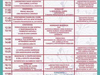 Nell’area Creatività, l’evento ospita gli artigiani e i loro prodotti esclusivi, oggettistica e strumenti musicali, mentre nella zona Espressione della parola editori e autori avranno la possibilità di presentare le loro opere. Il benessere inizia dalla cura dell’anima, ma passa anche attraverso il corpo; pertanto, si potranno gustare prodotti tipici provenienti da piccole aziende nell’area Gioia.
