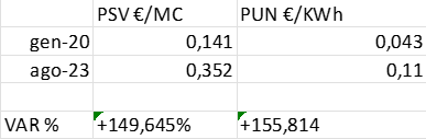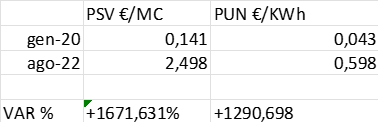 Anche se siamo, fortunatamente, molto lontani dai valori monstre dell’estate 2022, quando la variazione percentuale mostrava un +1671,631 % sul gas e un +1290,698 % sull’energia elettrica.