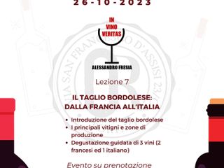 “Di Vino in Vino” sono le degustazioni guidate e raccontate da Alessandro Fresia, sommelier AIS. L’appuntamento di giovedì 26 ottobre esplora i vini di taglio bordolese, dalla Francia all’Italia. Dopo un’introduzione ai vini creati dall’assemblaggio di uve di vitigni utilizzati tradizionalmente per produrre i vini rossi di Bordeaux, si esplorano le zone di produzione e i principali vitigni per poi degustare 3 vini (2 francesi ed 1 italiano).