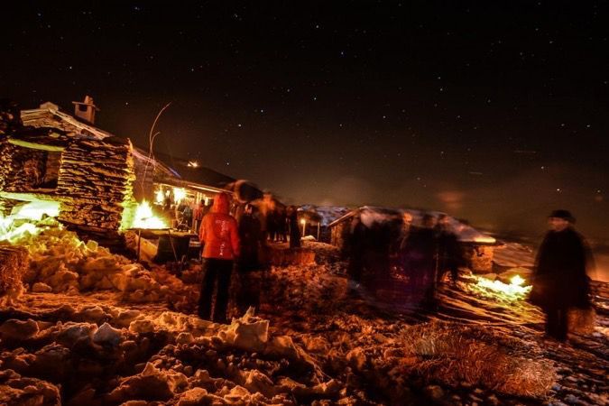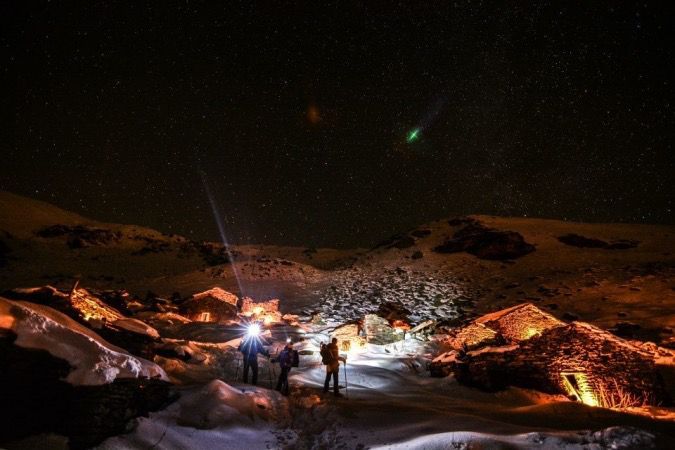 Ciaspole, ramponcini o sci d’alpinismo in base alle condizioni della neve di quella sera. Pila o torcia frontale che dovrà essere rigorosamente spenta durante la visita del presepe per non rovinare l’atmosfera.