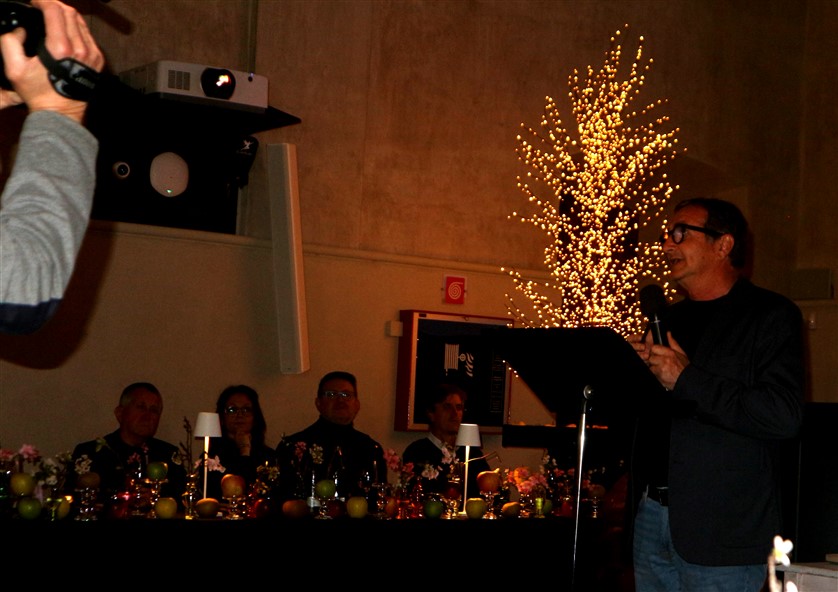 Quindi dopo i saluti di Paschetta Domenico, a nome del presidente della Fondazione C.R. Saluzzo, è iniziato lo spettacolo, che prevedeva la degustazione di 8 piatti realizzati utilizzando la frutta del distretto preceduti da filmati, letture e racconti.