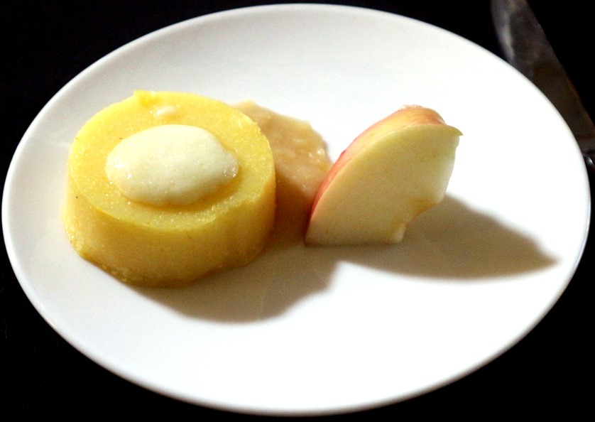 e una polentina con purea di mele e formaggio a chiudere la parte salata.