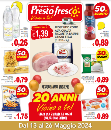 Sono in corso le promozioni su tantissimi prodotti da Prestofresco, in occasione del 20 anniversario