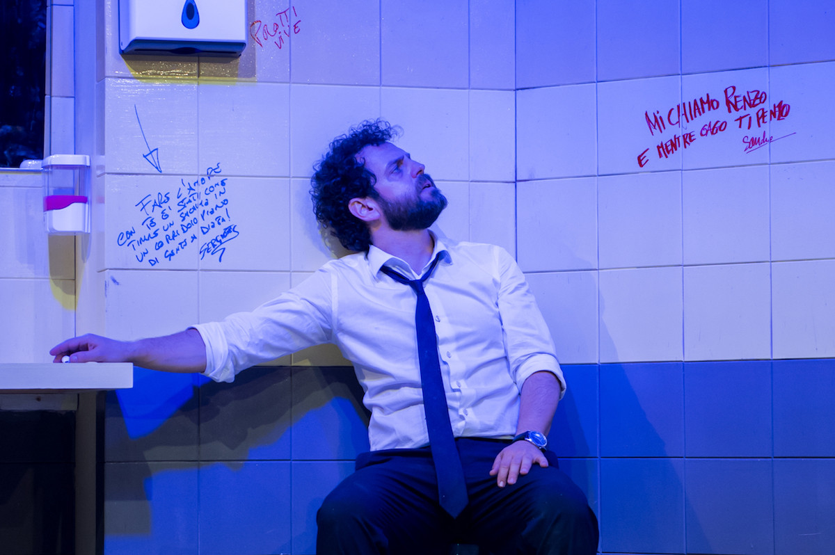 Gabriele Pignotta si mette alla prova con uno spettacolo pop innovativo e sorprendente, che mescola commedia (si ride tanto), atmosfere di suspense (la situazione si fa via via più tesa) e introspezione psicologica perché, dopo ore che il protagonista resta intrappolato, il bagno di quell’autogrill si trasforma in uno spazio in cui si materializza anche l’inconscio non consentendo fughe.
