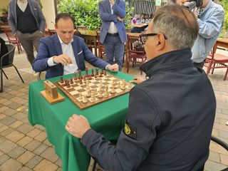 La partita di riscaldamento si è chiusa in otto mosse con scacco matto di regina con alfiere, mentre quella ufficiale è stata pari e patta. "Ci siamo ritagliati quest'ora - ha spiegato Cirio - perché Mimmo mi aveva sfidato: volevamo farlo prima delle elezioni. Gli scacchi sono uno sport utile da promuovere di più, anche tra i ragazzi, perché ti fanno usare molto cervello e sono basati sulla strategia".