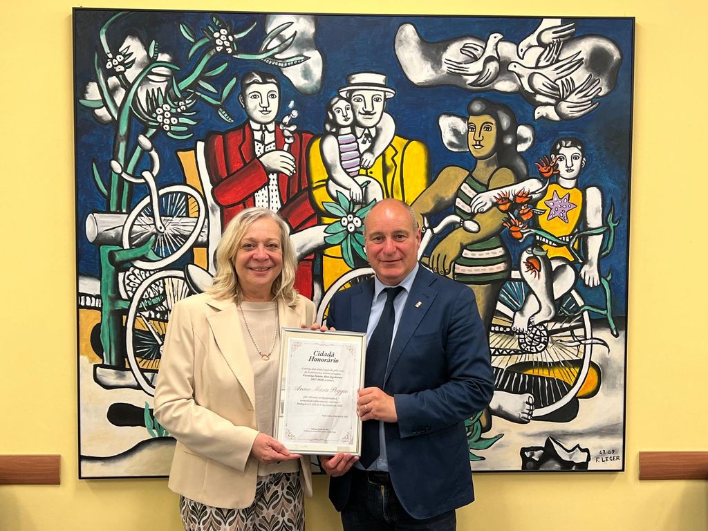 Annamaria Poggio, cittadina di Collegno, è tornata nella sua città natale dopo aver ricevuto un'importante onorificenza a Teofilo Otoni, in Brasile per le sue attività di cooperazione internazionale. Annamaria è stata riconosciuta come cittadina onoraria per il suo impegno sociale, in particolare per la fondazione di case di accoglienza per l'infanzia e vari progetti a sostegno delle fasce più povere della popolazione.