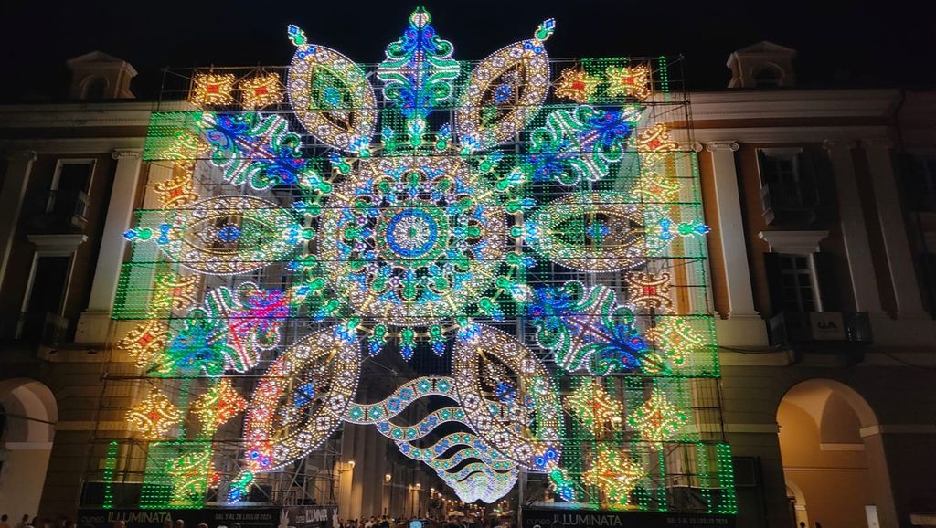 La Cuneo Illuminata 2024 avrà luogo sino al prossimo 28 luglio, con accensioni musicali ogni venerdì, sabato e domenica alle 22 e alle 22.30; nel resto della settimana le luminarie rimarranno accese, di sera, in maniera fissa.
