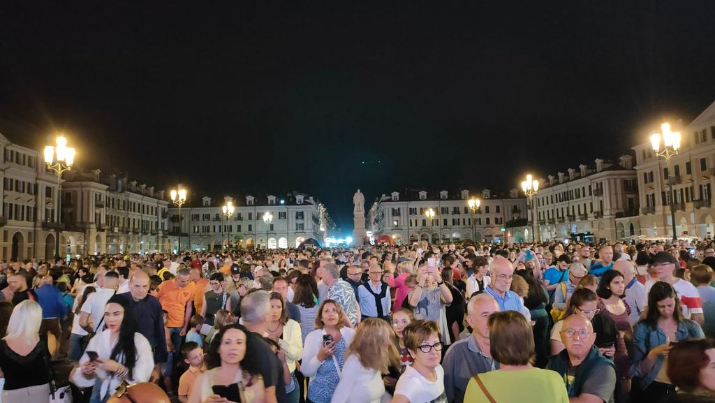 A seguito degli interventi istituzionali è stata effettuata la prima accensione in musica, davanti a una piazza Galimberti gremita.