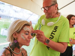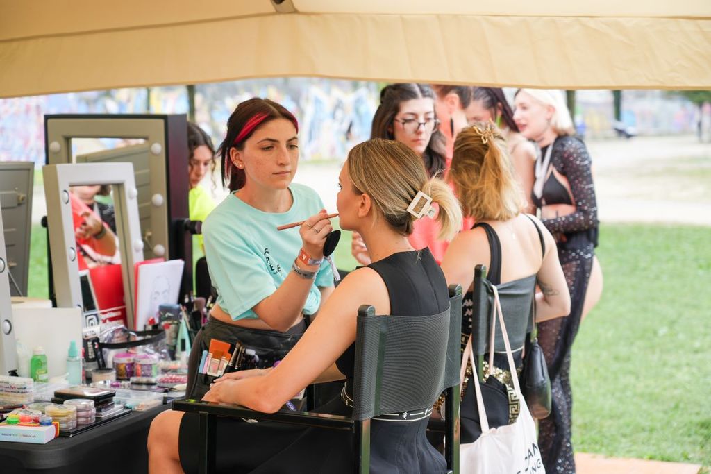 Per il make-up voglia di luce, di divertimento leggero e trendy: migliaia di brillantini, gemme colorate e pailettes - accompagnati da eyeliner fluo e glitter - hanno definito il look degli ospiti della Vip lounge permettendo a ciascuno di personalizzare la propria immagine “da festival”. Ad applicarli, il team dei più di 50 giovani make up artist MBA Making Beauty Academy di Torino e Milano coordinati coordinati dai makeup artist pro Erika Romaniello, Claudia Pelle e Marco Piras. Gradita interprete di makeup inclusivo ad alta creatività, la talentuosa drag queen Elektra Bionic, vincitrice della prima edizione di Drag race Italia.