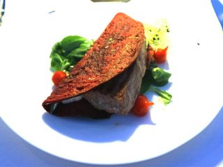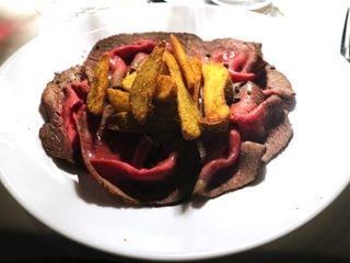 Portata principale il Roast-beef in Crosta di erbe aromatiche, servito con spicchi di patate,
