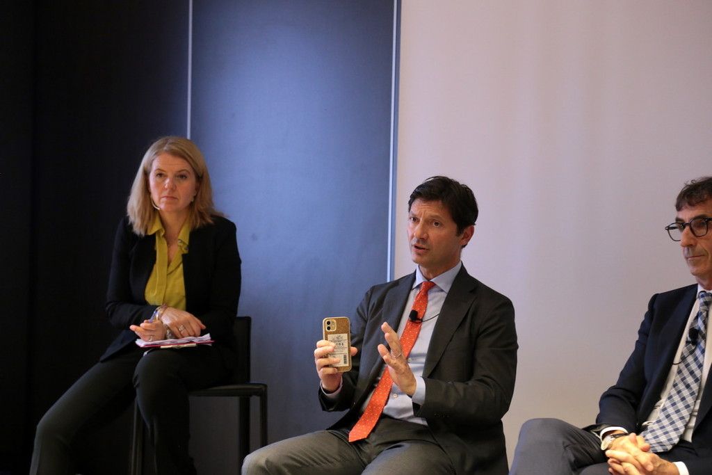 La conferenza stampa ha seguito lo schema della tavola rotonda, con la partecipazione di Sergio Dompé – Presidente Esecutivo, Dompé Farmaceutici, Alberto Bartolini – CEO, Cit Pharma e Presidente dello Steering Commitee di Pharmintech 2025, Valerio Soli - CEO Industrial Market Solution Division di Coesia e Presidente di Ipack Ima, Rossano Bozzi, Direzione Corporate Business Development, BolognaFiere.