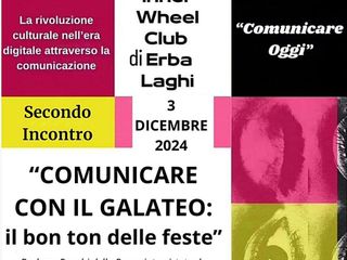 L’appuntamento organizzato dall’Inner Wheel Club di Erba Laghi è per martedì 3 dicembre alle 18.45 presso la sala conferenza della Pasticceria Sartori in via Volta n.14 a Erba (info e prenotazioni al numero 338.7020865)