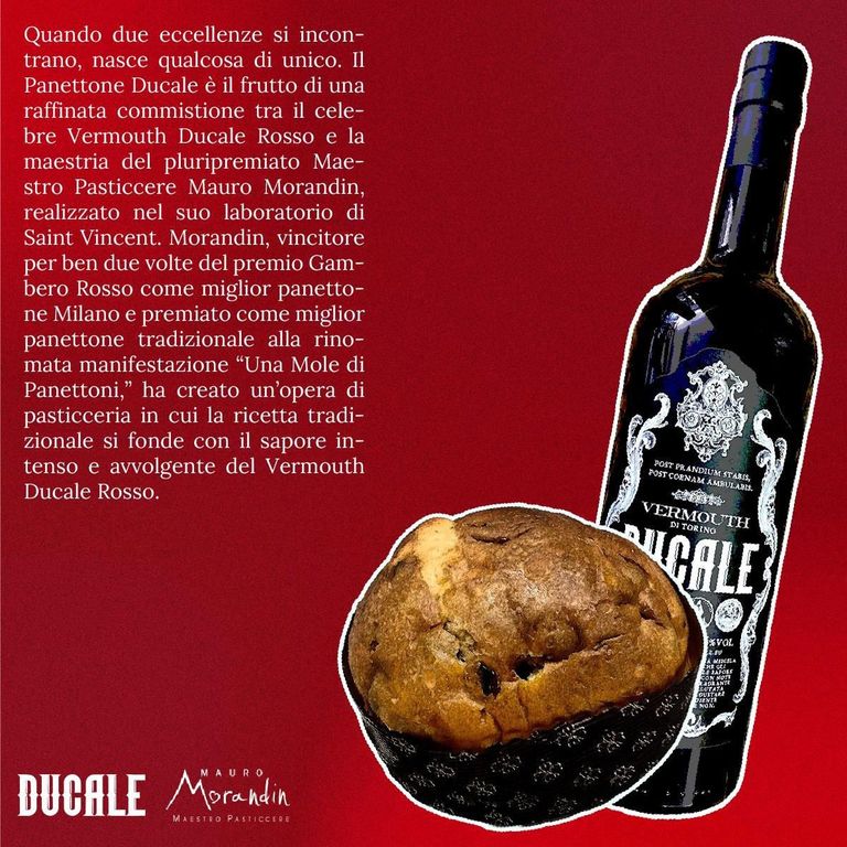 Già due volte incoronato dal Gambero Rosso "miglior panettone Milano" e vincitore del premio "miglior panettone tradizionale" alla prestigiosa manifestazione "Una Mole di Panettoni", Morandin ci stupisce ancora una volta con una creazione che unisce la tradizione dolciaria italiana all'eleganza del Vermouth Ducale.