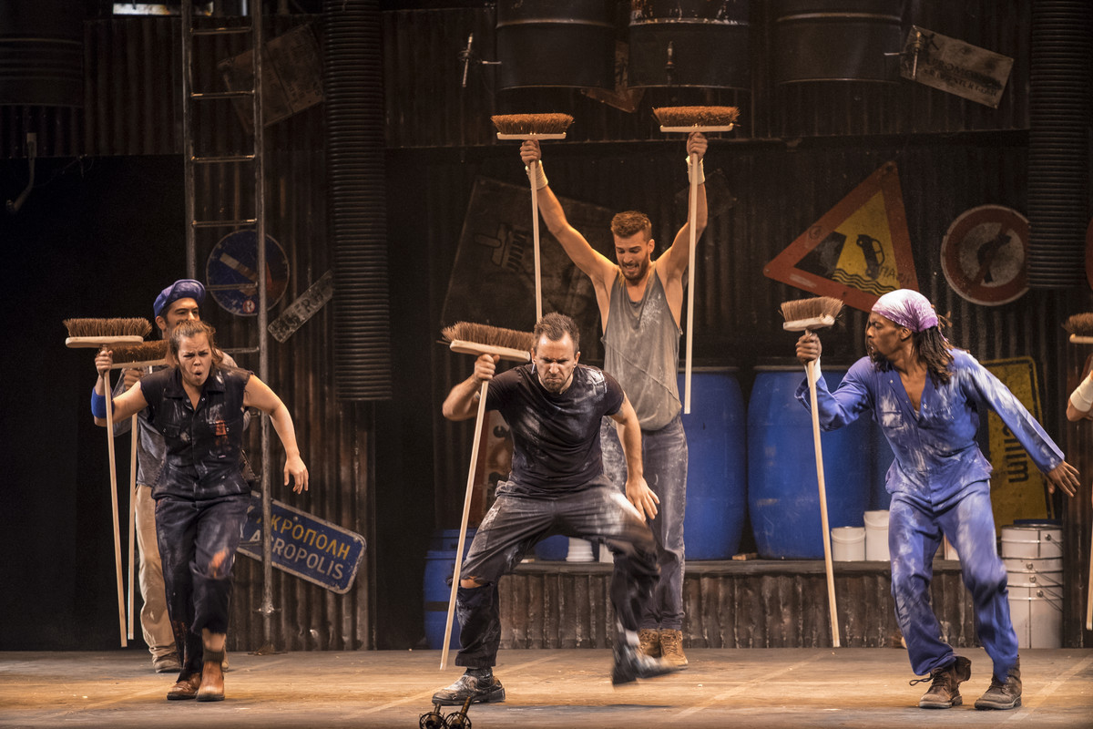 Uno degli spettacoli iconici del teatro performativo contemporaneo, nato dalla creatività di Luke Cresswell e Steve McNicholas. Senza trama, personaggi né parole, mette in scena il suono del nostro tempo, traducendo in una sinfonia intensa e ritmica i rumori e le sonorità della civiltà urbana contemporanea. Con strofinii, battiti e percussioni di ogni tipo, i formidabili ballerini-percussionisti-attori-acrobati danno voce ai più “volgari”, banali e comuni oggetti della vita quotidiana: bidoni della spazzatura, pneumatici, lavandini, scope, spazzoloni, riciclandoli a uso della scelta, in un “delirio” artistico di ironia travolgente.