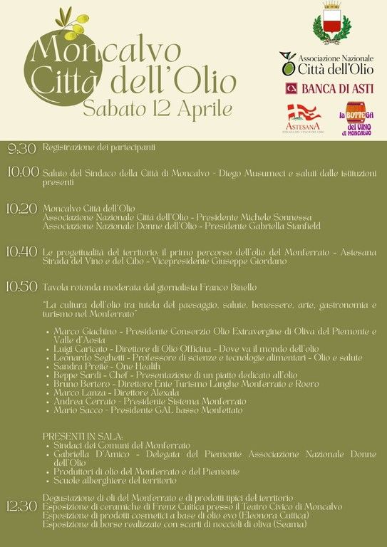 Un evento di grande rilevanza, come evidenziato dal sindaco Diego Musumeci, che rappresenta un'opportunità per presentare un ambizioso progetto territoriale che coinvolgerà una trentina di Comuni del Monferrato, la Strada del Vino e del Cibo Astesana, la Bottega del Vino di Moncalvo, l’Associazione Nazionale delle Donne dell’Olio, il Consorzio di Tutela dell’olio extravergine del Piemonte e i produttori di olio del Monferrato.