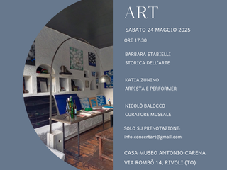 Sabato 24 maggio alle 17.30, un’occasione rara e preziosa attende gli amanti dell’arte e della musica: la Casa-Museo Antonio Carena di Rivoli, dimora privata del celebre “Artista delle Nuvole”, apre le sue porte per un evento unico nel suo genere: “Concert art”, un incontro immersivo tra arti visive, suoni e memoria storica.