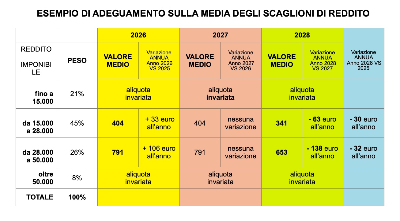 La novità principale sarà il passaggio dagli attuali quattro scaglioni a tre nel 2028, con porterà quindi alle seguenti ripartizioni: la prima fino a 28mila euro, la seconda da 28mila euro a 50mila euro e la terza oltre i 50mila euro.