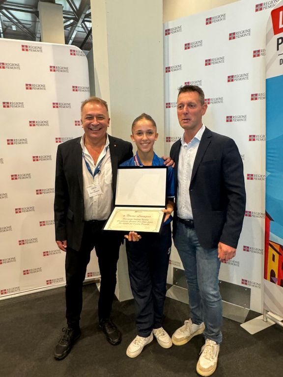 L’assessore al Commercio, Agricoltura e Cibo, Turismo, Sport e Post-Olimpico, Caccia e Pesca, Parchi della Regione Piemonte Paolo Bongioanni ha consegnato ieri allo Spazio Piemonte - nell’ambito della settima giornata dei Mondiali di Twirling in corso all’Inalpi Arena di Torino - gli attestati di riconoscimento della Regione Piemonte alle atlete piemontesi della formazione italiana che lo scorso 5 luglio ha vinto il titolo europeo della disciplina Free Style a Lleida in Spagna.