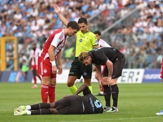 CASTEL DI SANGRO (ITALPRESS) - Finisce con una bella e una brutta notizia il ritiro del Napoli a Castel di Sangro. La bella è che gli azzurri hanno battuto l'Olympiacos mostrando una crescita importante. La brutta è che Romelu Lukaku si è infortunato al 33' del primo tempo. Per lui un risentimento al quadricipite della coscia destra. Le sue condizioni verranno valutate ma l'impressione è che salterà sicuramente il Sassuolo. Poi si dovrà capire se ce la farà con il Cagliari. A firmare il successo Politano con un tiro dei suoi dopo 16 minuti e Lucca, entrato al posto di Big Rom, all'8' della ripresa. A tempo scaduto una incomprensione tra Rrahmani e Milinkovic-Savic ha permesso a Chiquinho di accorciare le distanze. Al fischio dell'arbitro Dionisi Antonio Conte sceglie le quattro stelle di centrocampo per sfidare i greci. Difficile fare a meno di Zambo Anguissa, uomo simbolo del reparto nevralgico. Ed ecco che il camerunense viene confermato al fianco di Lobotka: un solo errore in tutta la gara che ha permesso agli avversari di calciare in porta. De Bruyne è stato schierato dietro Lukaku con McTominay largo a sinistra e Politano a destra. Il campione belga ex City ha dettato i tempi spaziando ovunque e andando a pressare continuamente senza mai arrendersi. Conte non l'ha sostituito. In porta la novità è la titolarità di Milinkovic Savic, anche in virtù del fatto che mercoledì contro il Giugliano aveva giocato Meret. Davanti al serbo Di Lorenzo, Rrahmani, Juan Jesus e Olivera. Peccato, come detto, per l'imprevisto di Lukaku. A grandi linee, però, sarà questa la formazione base pensata da Conte. Il risultato non è mai stato messo in discussione. Nella ripresa è entrato Strefezza che ha provato a creare problemi ma è stato limitato. La gara è stata troppo maschia all'inizio e Conte si è arrabbiato molto quando El Kaabi è franato su Rrahmani rischiando di fargli del male. Alla fine è rientrato tutto. Ora appuntamento al 23 agosto alle 18 in casa del Sassuolo.- foto Ipa Agency -(ITALPRESS).