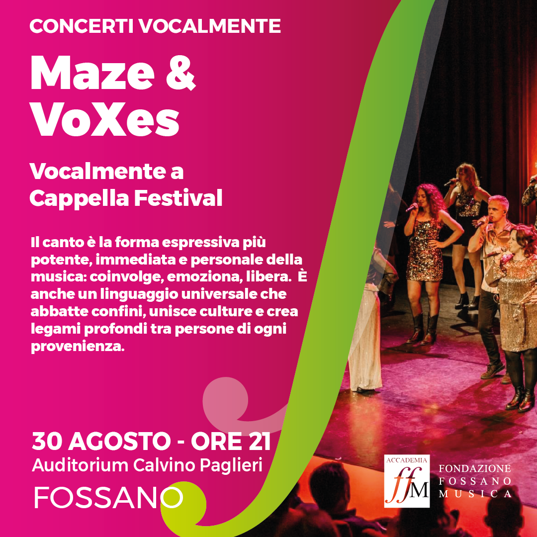 La prima serata si aprirà con i VoXes, ensemble a cappella nato dalla Fondazione Fossano Musica e oggi punto di riferimento per la vocalità in Piemonte. Composto da 25 cantanti, il coro spazia con naturalezza dal jazz al pop, dalla world music alla sperimentazione, regalando un’esperienza di canto corale raffinata e sorprendente.