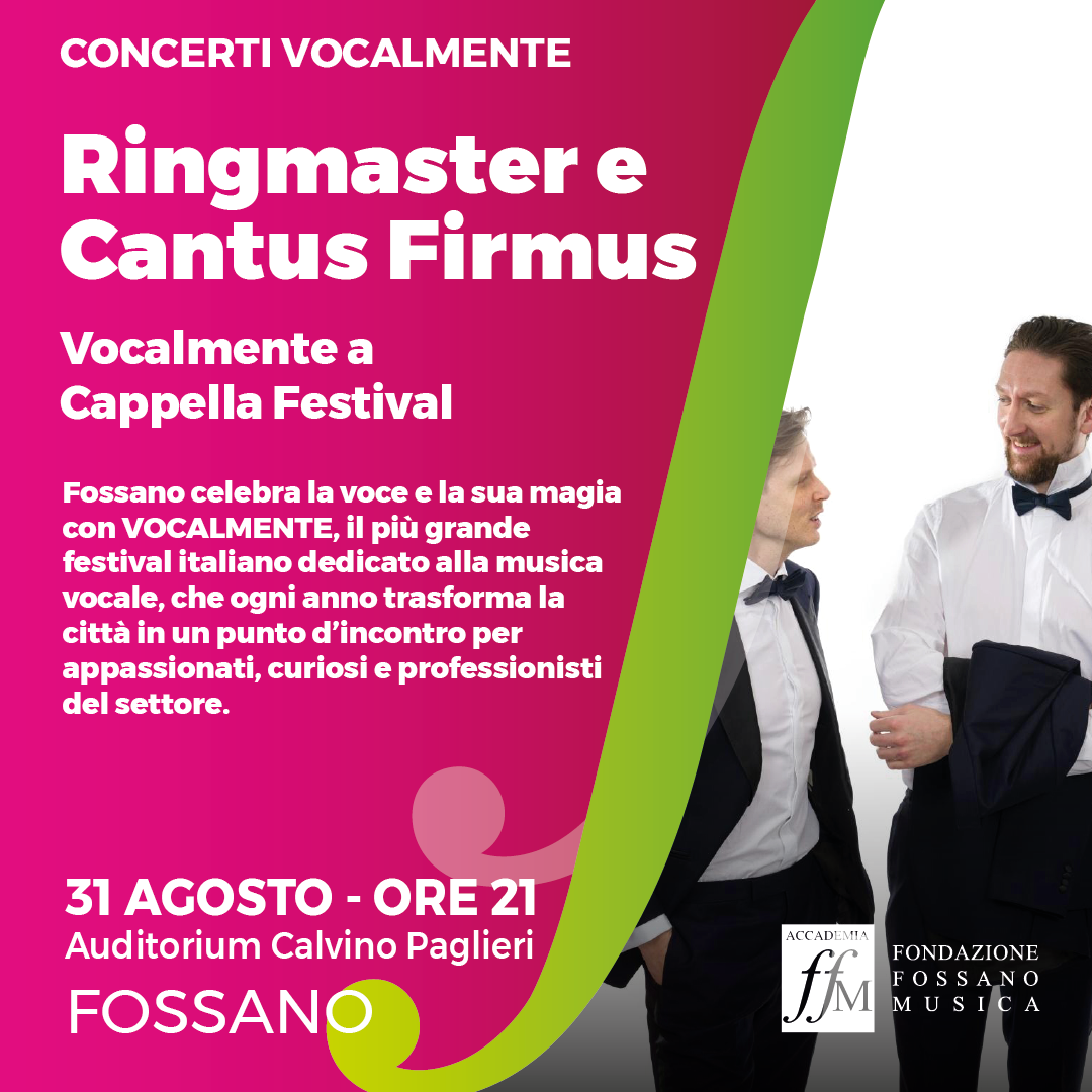 Gran finale con i leggendari Ringmasters, campioni mondiali di barbershop nel 2012 e primi non americani ad aggiudicarsi il titolo. Con le loro armonie perfette, l’energia scenica e un repertorio che va dai Beatles a Simon & Garfunkel, fino ad Elvis Presley, il quartetto svedese è oggi un’icona assoluta dell’a cappella internazionale.