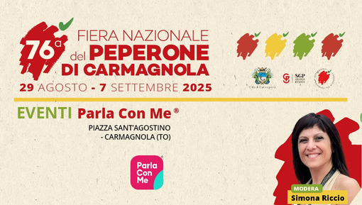 La 76ª Fiera Nazionale del Peperone di Carmagnola (29 agosto – 7 settembre 2025) ospiterà tre serate speciali del format Parla con Me Ⓡ, ideato e condotto da Simona Riccio (Digital Marketing Expert, Social Media Manager, LinkedIn Top Voice Italia, Founder Parla con Me Ⓡ).