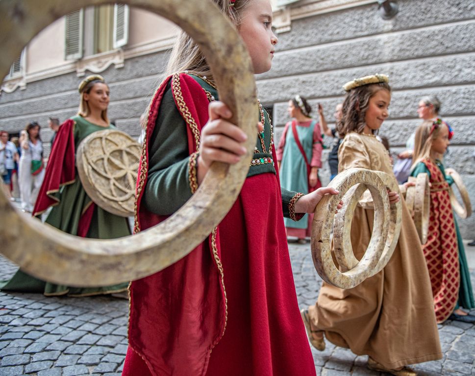750 anni sono un compleanno importante che segna il ritorno della sfilata storica nel suo percorso tradizionale, arricchita da una grande novità: come deciso durante il Consiglio del Palio ogni comitato potrà aggiungere cinque nuovi personaggi nel proprio corteo e un Sapiente che farà parte del Consiglio dei Saggi che sfilerà insieme al Governatore.