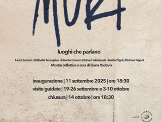 La mostra MURI riunisce sei artisti – Laura Berruto, Raffaella Brusaglino, Claudio Cravero, Bahar Heidarzade, Guido Pigni e Michele Rigoni – che esplorano questo tema in chiave fisica e simbolica, intrecciando linguaggi diversi: fotografia, pittura, collage, incisione, installazione. Attraverso un mosaico di opere l'open space di via Cervino si trasforma in un paesaggio di confini e passaggi, che riflette non solo sulla città contemporanea, ma sulla nostra condizione umana: sempre in bilico tra chiusura e apertura, separazione e incontro, allontanamento e vicinanza. Una condizione fragile e universale, che i muri rivelano e al tempo stesso nascondono. Uno spazio da attraversare, da ascoltare, da cogliere nelle sue poetiche sfumature che gli artisti hanno saputo raccontare con differenti linguaggi, sguardi e sensibilità.