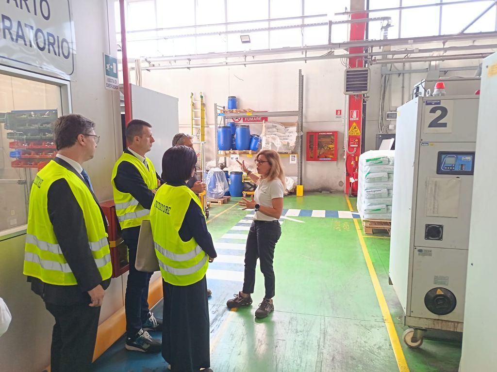 Visita alla Hutchinson di Rivoli per Davide Nicco, presidente del Consiglio regionale del Piemonte, in compagnia di Marina Bordese e Bruno Druetta, responsabile tecnico della Bus Company. Si tratta di un'entità che fa parte del gruppo Hutchinson, appartenente alla Business Unit Fluid Management Systems (FMS).