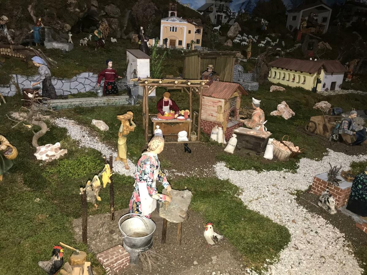 Attualmente si contano più di 120 statue in movimento, tutte realizzate artigianalmente dai componenti del gruppo. Questo allestimento rappresenta fedelmente i nostri tipici ambienti rurali (sia di pianura che alpini), facendo riaffiorare i ricordi dei mestieri che furono.