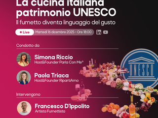 Ma come si racconta oggi questo patrimonio? E quali linguaggi possono renderlo vivo, accessibile e comprensibile anche alle nuove generazioni? A queste domande prova a rispondere la live condivisa Parla Con Me® × RipartiAmo, dal titolo: “La cucina italiana Patrimonio UNESCO – Il fumetto diventa linguaggio del gusto”, in programma: