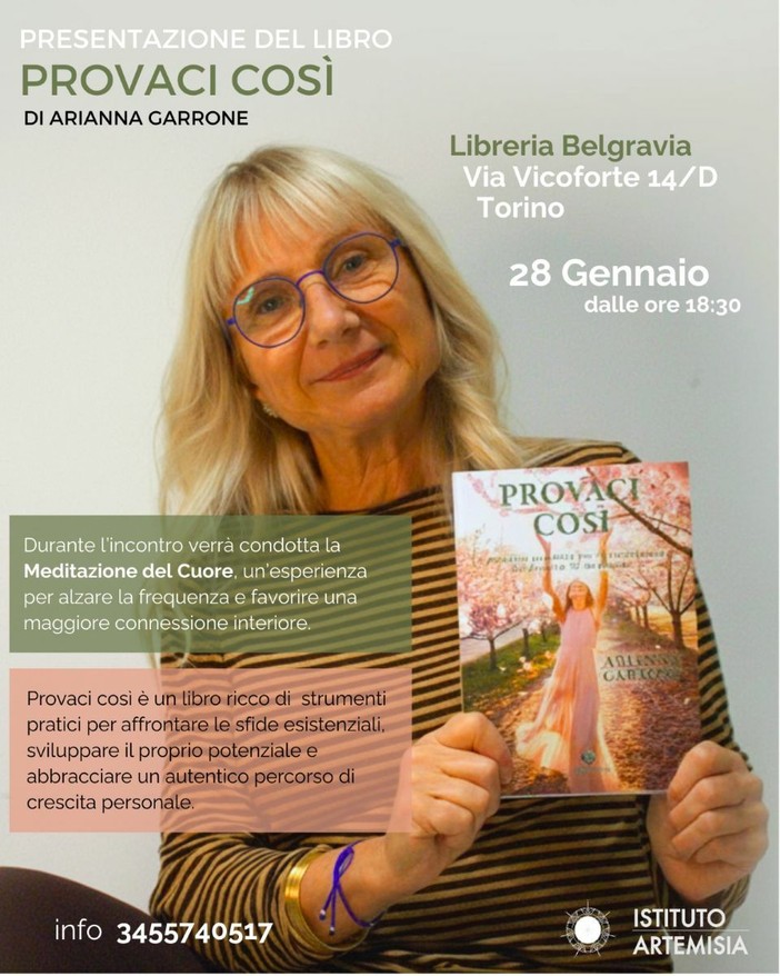 La presentazione di Provaci così, edito da Lisianthus Editore (www.lisianthuseditore.com), si terrà mercoledì 28 gennaio 2026 alle ore 18:30 presso la Libreria Belgravia, in via Vicoforte 14/D, Torino.