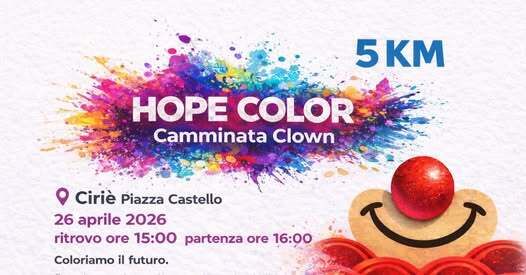 Una premessa doverosa per ufficializzare che domenica 26 aprile la terza edizione della Camminata Clown, organizzata a Ciriè dall’associazione guidata dal presidente Pietro Martinetto, ospiterà la Hope Color, ideata dalla realtà chivassese del presidente Giovanni Mirabella, che per la prima volta farà tappa in città. Accanto ai nasi rossi e ai palloncini colorati dei Wolontari Clown ci saranno così le iconiche bustine di colore in polvere della Hope Color, a rendere questo evento ancora più speciale e unico.