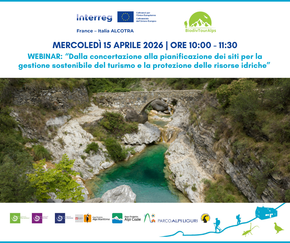 Si tratterà del quarto e ultimo webinar di un ciclo dedicato alla biodiversità e al turismo nelle aree protette. L’incontro, in modalità telematica, fa parte delle attività del progetto di cooperazione transfrontaliera Italia-Francia ALCOTRA 2021-2027 “BiodivTourAlps” ed è organizzato dall’Ente Parco in collaborazione con il Rifugio Alpino Garelli e il Parco Naturale Regionale delle Prealpi d'Azur.